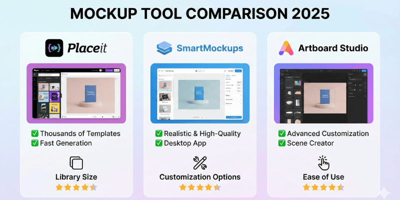 Placeit + SmartMockups + Artboard Studio