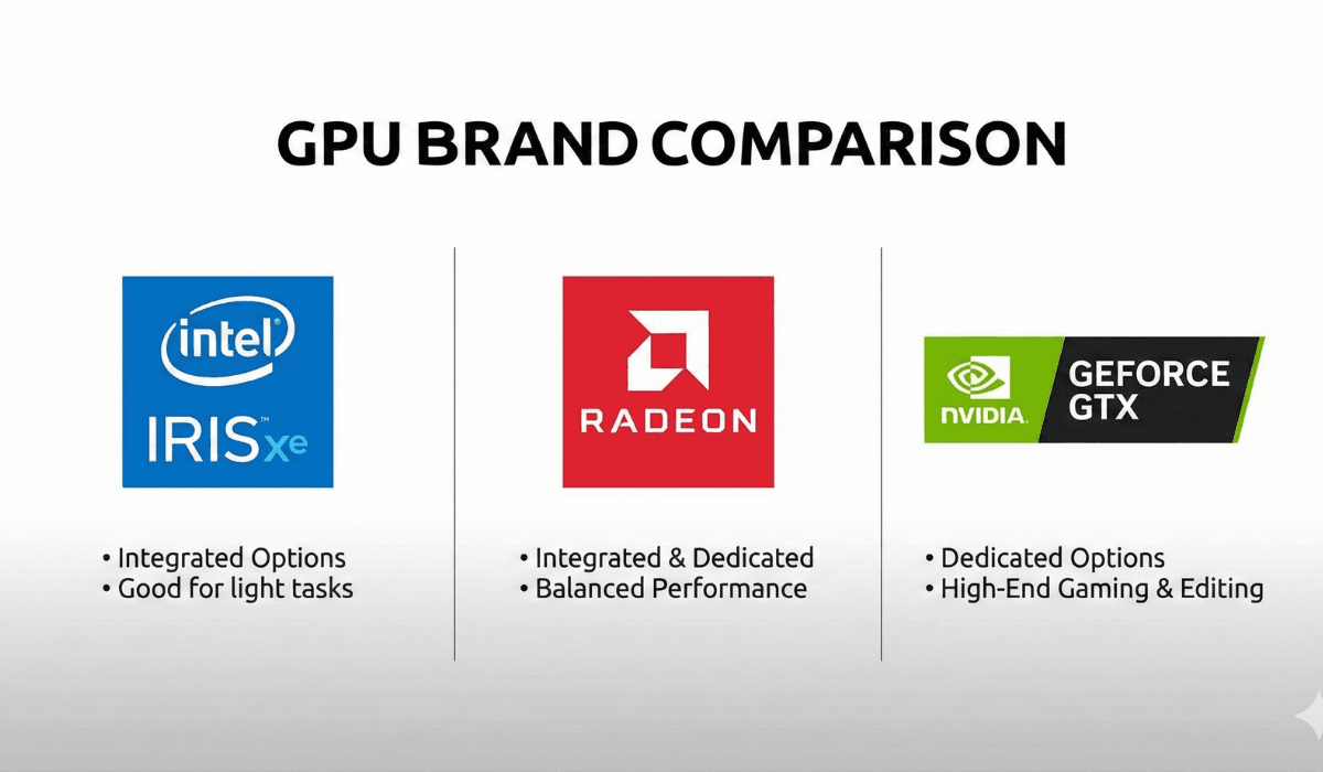 But if you need power → choose a Dedicated GPU laptop with NVIDIA or AMD.
