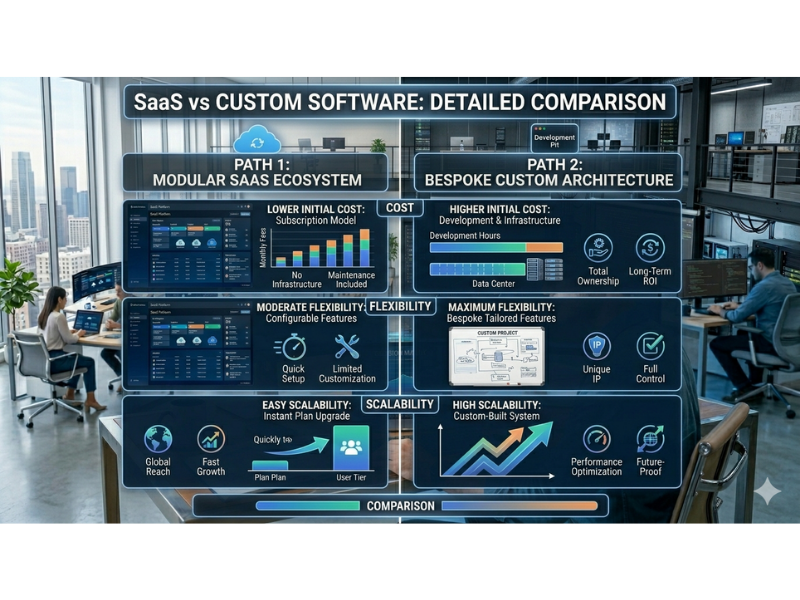 Choosing the right software solution is one of the most critical decisions for any business in 2026. Whether you are running a startup, small business, or scaling company, the choice between SaaS and custom software can directly impact your efficiency, cost, and long-term growth.